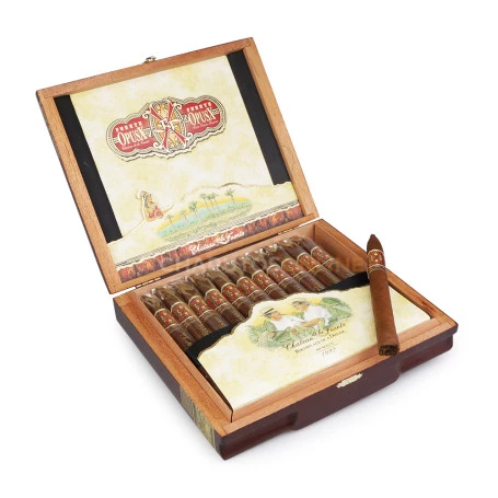 Arturo Fuente Opus X revolucionou a indústria de charutos dominicana quando foi lançado em 1995. Situado no vale de El Cibao, República Dominicana, está o Chateau de la Fuente, lar do charuto mais procurado de nosso tempo, o cobiçado Fuente Fuente Opus X. Considerado o pináculo da perfeição do charuto e o padrão pelo qual todos os charutos são medidos. A combinação única dos tabacos Fuente produz sabores suaves e ousados, em harmonia com a plenitude doce e persistente da exclusiva capa Opus X. Construção impecável, sabor requintado e um século de maestria e tradição.