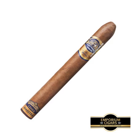 A apresentação da linha Maestra prestou homenagem ao legado duradouro da marca e ao seu compromisso inabalável com a qualidade e o artesanato. Caracterizada pelas suas distintas anilhas azuis com dourados. Uma das características marcantes da Línea Maestra é o uso exclusivo de tabaco 100% San Luis, proveniente das famosas plantações de Vuelta Abajo, em Pinar del Río.