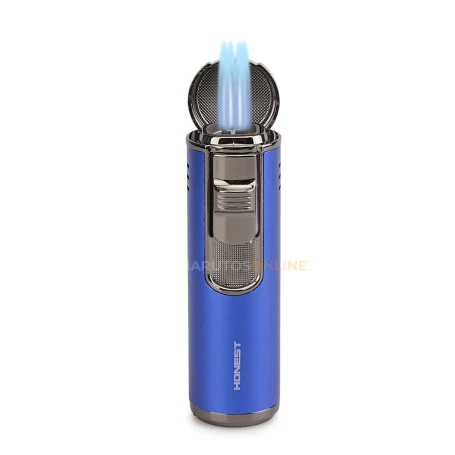Belíssimo isqueiro com chama tipo maçarico de altíssima qualidade. Ideal para charutos pois o gás é inodoro. Possui 4 chamas à prova de vento e de alta potência e furador.